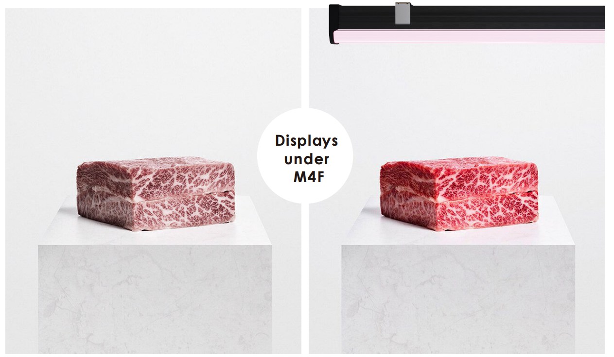 Az M4 ultravékony szalagfényen alapul,Fanxstarmódosította a fényforrást, hogy 4000K+6500K+Vörös 660nm spektrumot készítsen kifejezetten a szupermarketek húsrészlegéhez. Ennek a húsfény-spektrumnak a megvilágítása mellett a szupermarketekben árult hús lédúsabbnak és frissebbnek tűnhet, ezáltal nő a hús értékesítése.